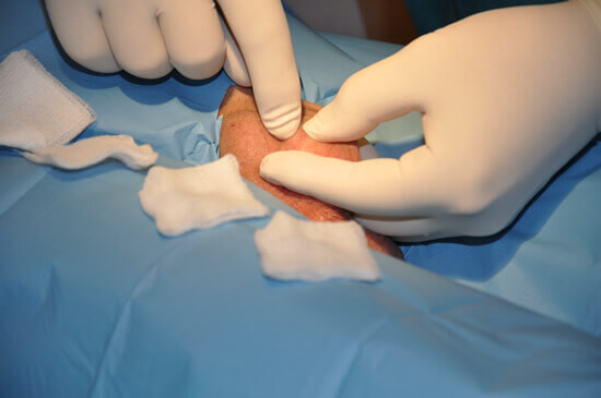 Całość patrzenia obiektywu w aparacie to jest 6-8 mm, chociaż na zdjęciu wygląda to nieco w powiększeniu. Na jednym ze zdjęć gdzie pokazano zakończenie zabiegu trudno dostrzec mikro blizny na powierzchni skóry moszny. Podobnie nie spostrzeżemy tam żadnego szwu. Nie widać też żadnej strzykawki z igłą. Więc przyjrzyjmy się procedurze „Total vascetomy” razem. Na zdjęciach poniżej nie widać momentu zakładania szwów chirurgicznych na nasieniowód, wycinania kilku milimetrów nasieniowodu i wykonania mikrokoagulacji ujść nasieniowodów, mimo że czynności te są wykonywane. Podyktowane to zostało prośbą wrażliwych pacjentów, żeby nie umieszczać na zdjęciach tych wymienionych procedur.